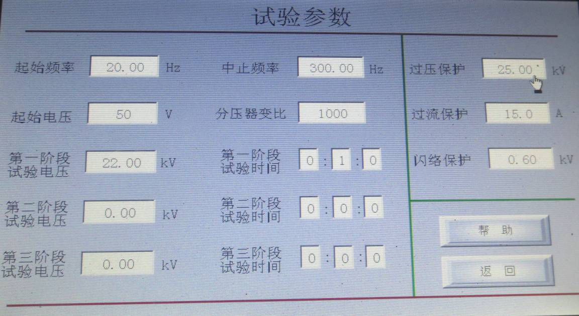 第二階段試驗電壓:設置試驗電壓的第二階段值。