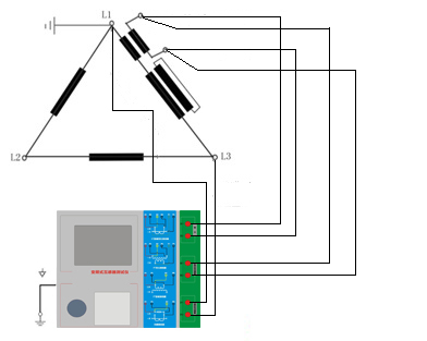 1.測試儀在三角形接法變壓器上進行CT測試的接線方式如圖所示。