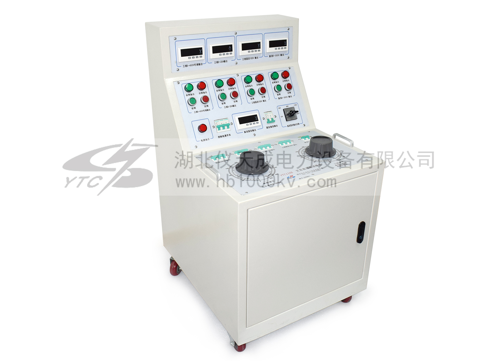 YTC1106系列高低壓開關柜通電試驗臺用于高低壓開關柜生產廠家對所生產的高低壓開關柜進行出廠前的各項通電試驗。它能提供各種交、直流電源,便于對開關柜的檢測,提高工作效率。