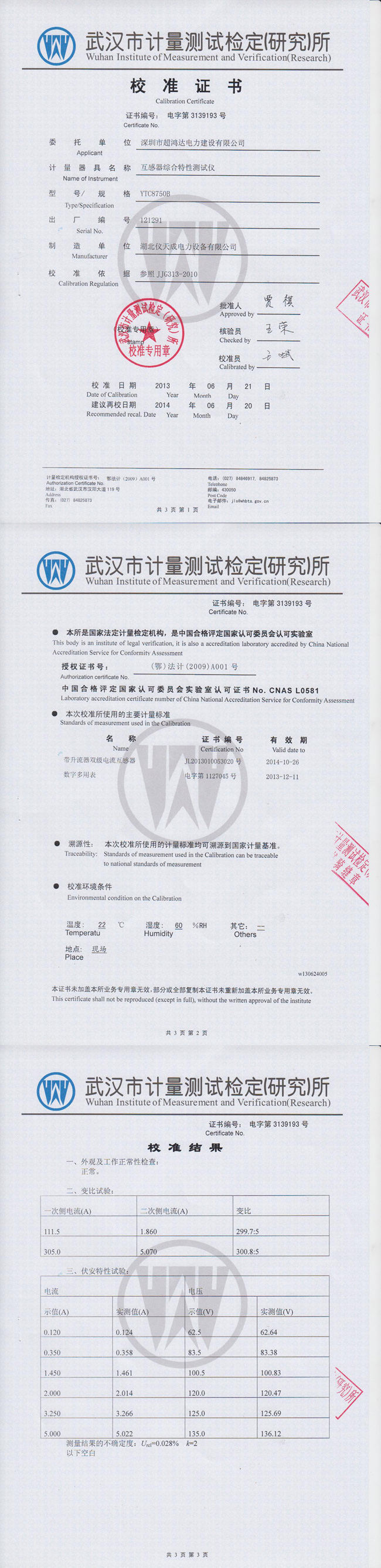 YTC8750B互感器綜合特性測試儀資質(zhì)證書